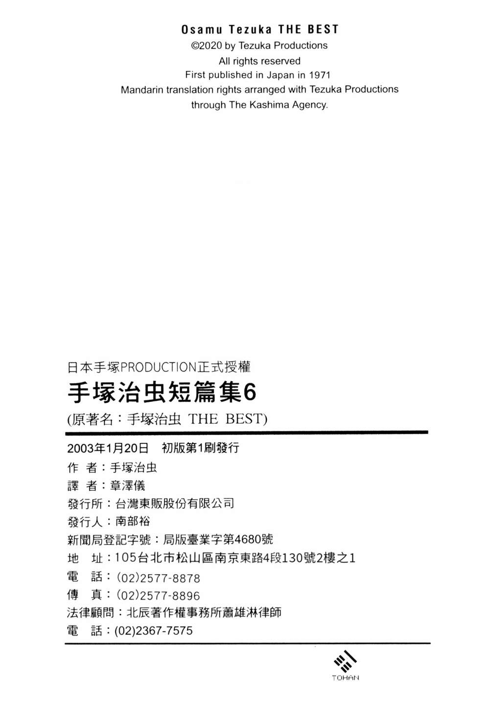 《手冢治虫短篇集》目录