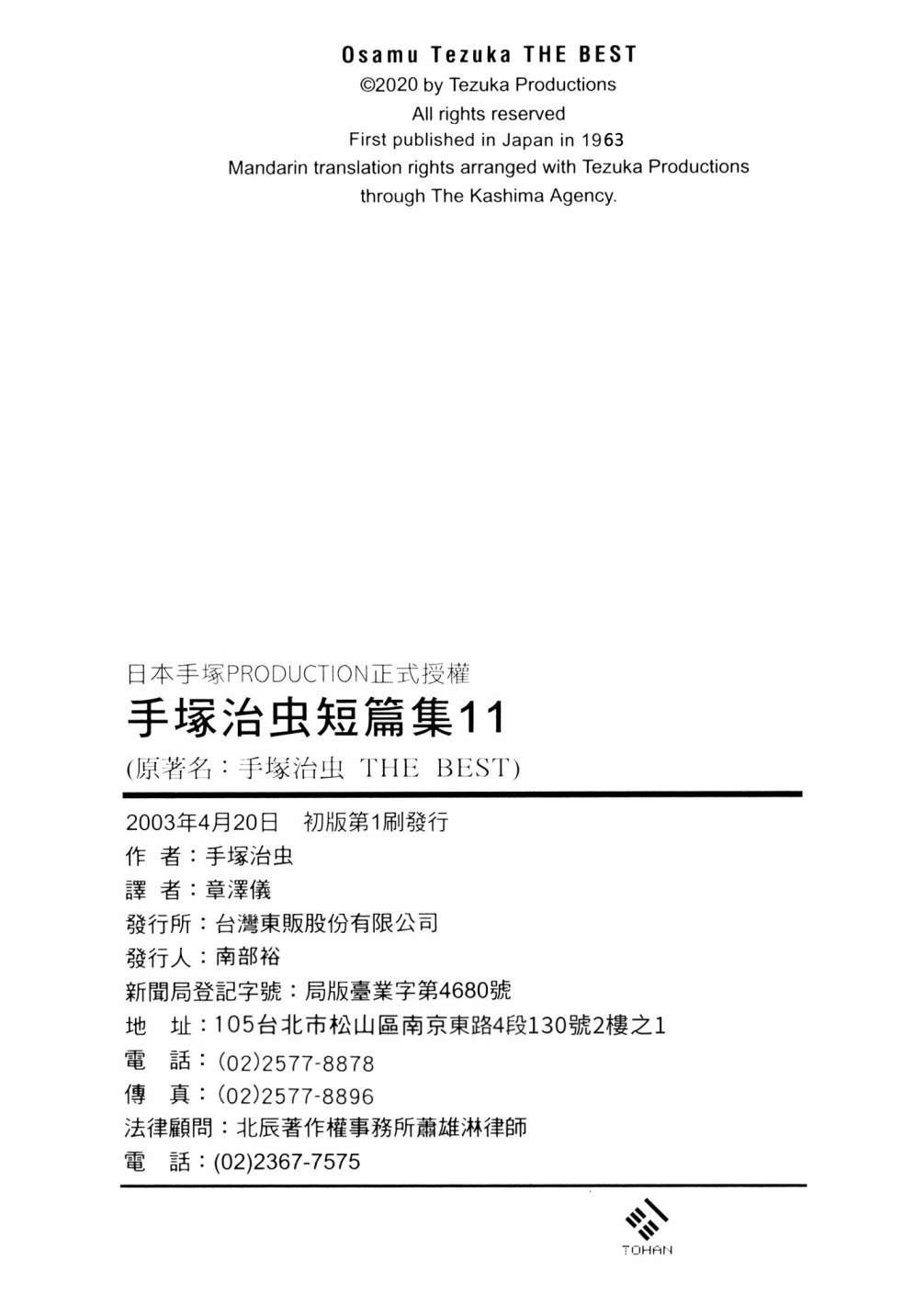 《手冢治虫短篇集》目录