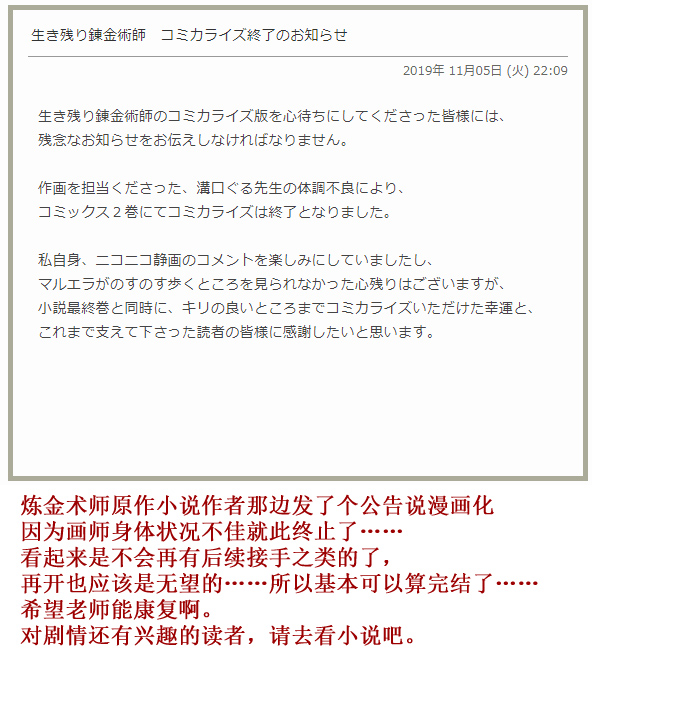 首页 > 幸存炼金术师想在城里静静生活 > 完结通知